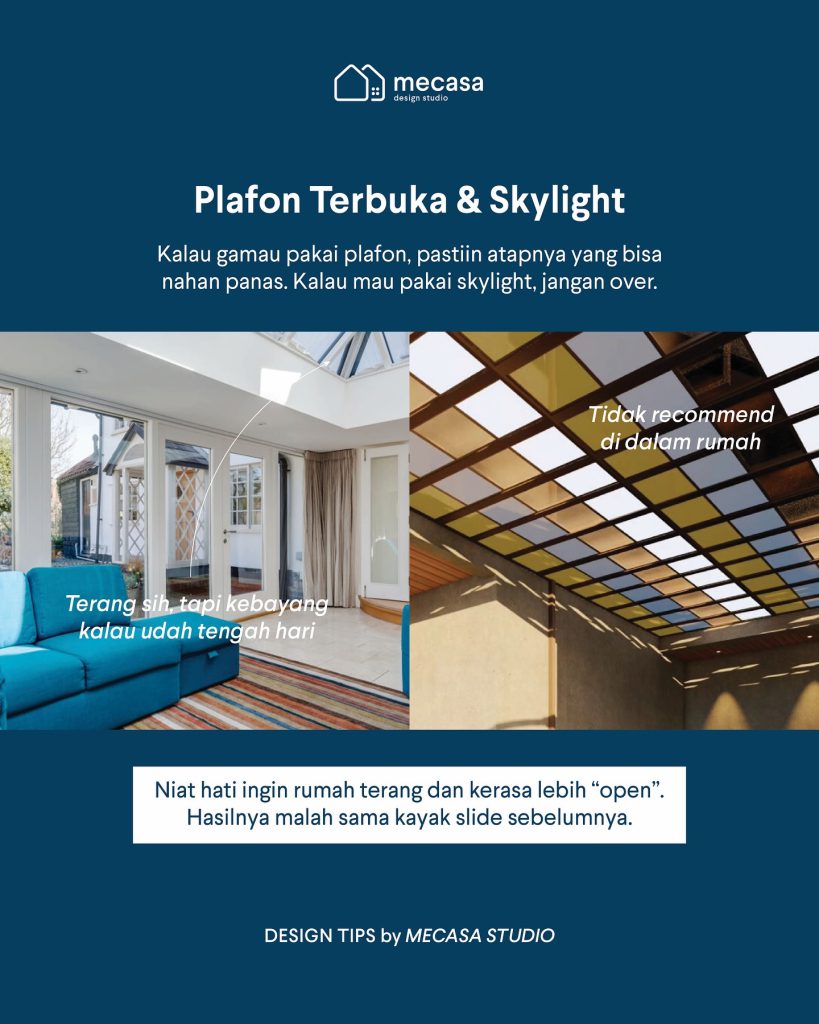 • Skylight boleh digunakan, tapi batasi ukurannya dan pastikan menggunakan kaca yang tahan panas.